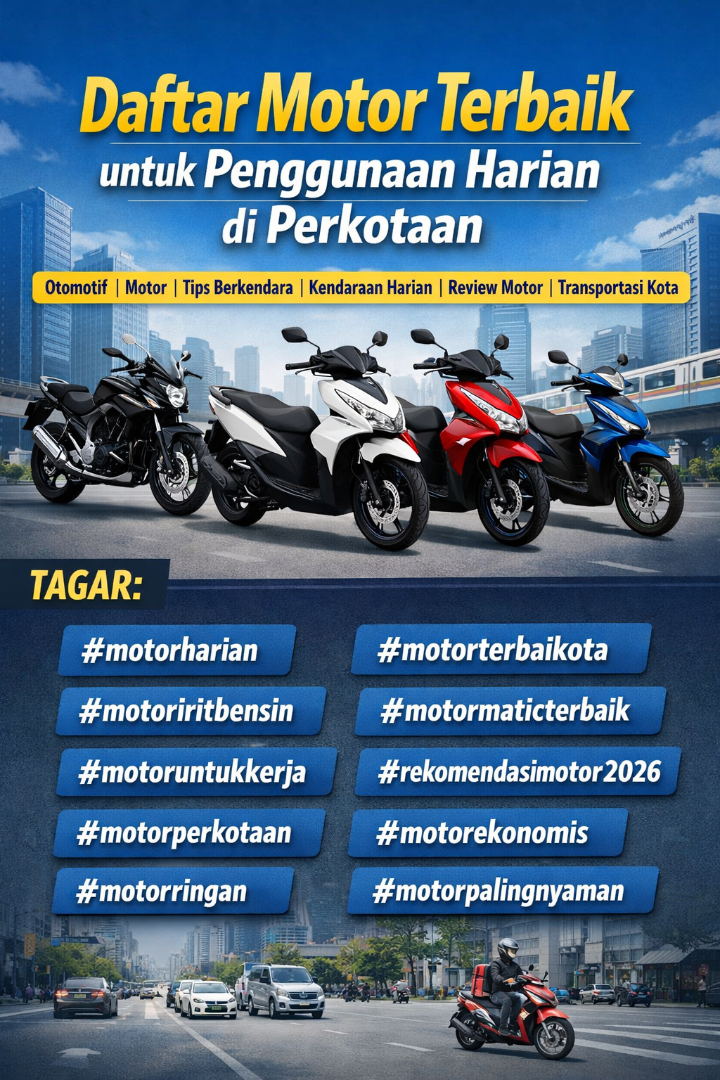 Dengan memilih motor yang tepat, aktivitas harian di kota akan menjadi lebih efisien, nyaman, dan hemat biaya.