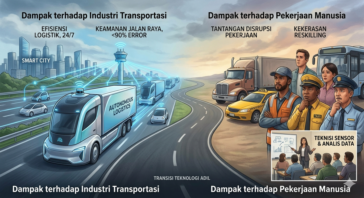 Kendaraan otonom adalah keniscayaan teknologi yang akan membawa kemajuan pesat dalam hal efisiensi dan keamanan. Namun, dampak sosialnya terhadap pekerjaan manusia memerlukan perhatian serius dari pemerintah melalui kebijakan reskilling (pelatihan ulang) bagi para pekerja yang terdampak. Masa depan transportasi bukan lagi tentang siapa yang memegang setir, melainkan tentang bagaimana kita mengelola transisi teknologi ini secara adil dan bijaksana.