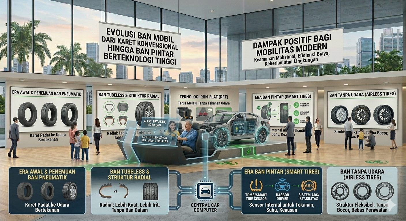 Ban sering kali dianggap sebagai komponen sederhana, padahal ia adalah satu-satunya bagian kendaraan yang bersentuhan langsung dengan aspal. Dari sekadar lingkaran karet keras di masa lalu, kini ban telah berevolusi menjadi komponen “pintar” yang terintegrasi dengan sistem komputer mobil.