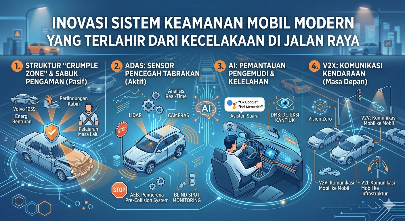 Jalan raya adalah tempat yang dinamis namun penuh risiko. Selama lebih dari satu abad sejarah otomotif, kecelakaan lalu lintas telah menjadi tragedi yang menyedihkan, namun di sisi lain, menjadi pendorong utama bagi evolusi teknologi. Setiap insiden fatal atau cedera serius di masa lalu telah memaksa insinyur, ilmuwan data, dan regulator untuk bertanya: “Bagaimana kita bisa mencegah ini terjadi lagi?”