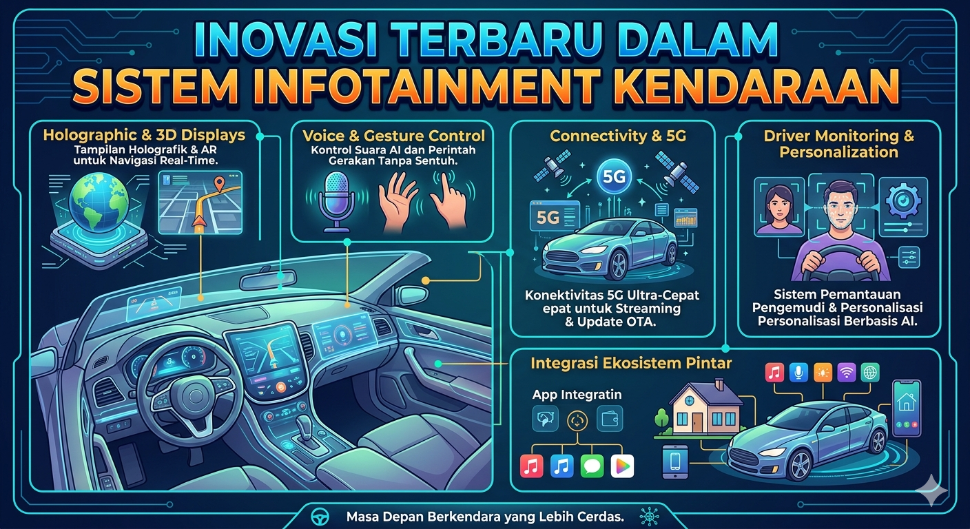 Inovasi dalam sistem infotainment kendaraan telah mengubah pengalaman berkendara secara drastis. Dari layar sentuh canggih hingga kecerdasan buatan dan konektivitas tinggi, semua teknologi ini bertujuan untuk meningkatkan kenyamanan, keamanan, dan hiburan bagi pengguna.