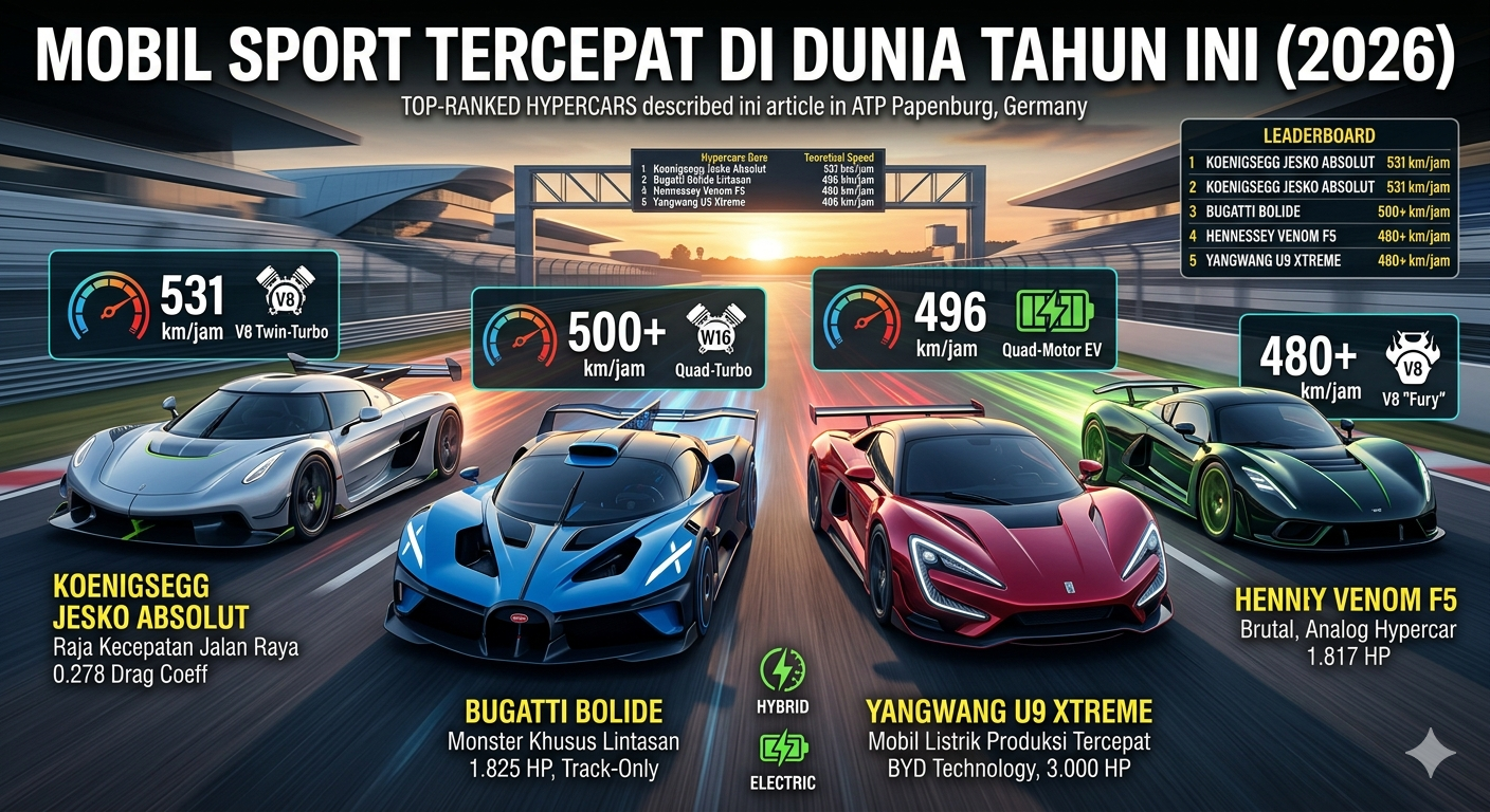 Dunia otomotif tahun 2026 telah mencapai titik di mana batas antara mobil jalan raya dan jet darat semakin kabur. Persaingan antara mesin pembakaran internal (ICE) yang legendaris melawan teknologi elektrik yang instan melahirkan rekor-rekor kecepatan baru yang sulit dipercaya.