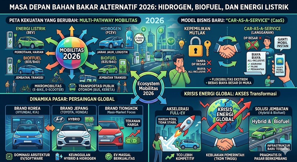 Masa depan bahan bakar alternatif di tahun 2026 bukanlah tentang kompetisi antara baterai, hidrogen, dan biofuel, melainkan tentang integrasi mereka dalam sebuah Ecosystem Mobilitas yang sejati.