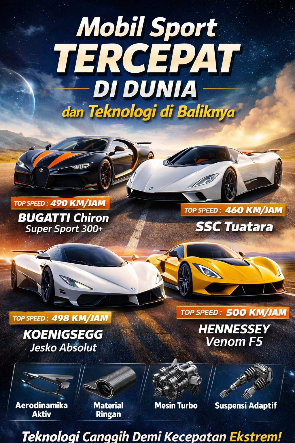 Mobil sport tercepat di dunia bukan hanya simbol kecepatan, tetapi juga menjadi bukti kemajuan teknologi otomotif modern. Berikut beberapa mobil sport tercepat di dunia dan teknologi canggih di balik performanya.