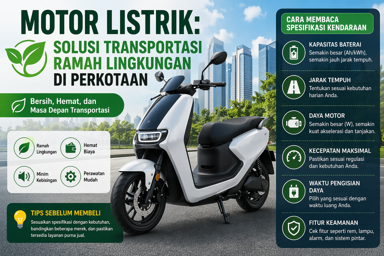 Transportasi perkotaan terus mengalami perkembangan seiring bertambahnya jumlah penduduk dan kebutuhan mobilitas yang semakin tinggi. Namun, di balik kemudahan tersebut, muncul berbagai permasalahan seperti polusi udara, kemacetan, dan meningkatnya konsumsi bahan bakar fosil. Dalam situasi ini, motor listrik hadir sebagai salah satu solusi transportasi ramah lingkungan yang semakin diminati masyarak