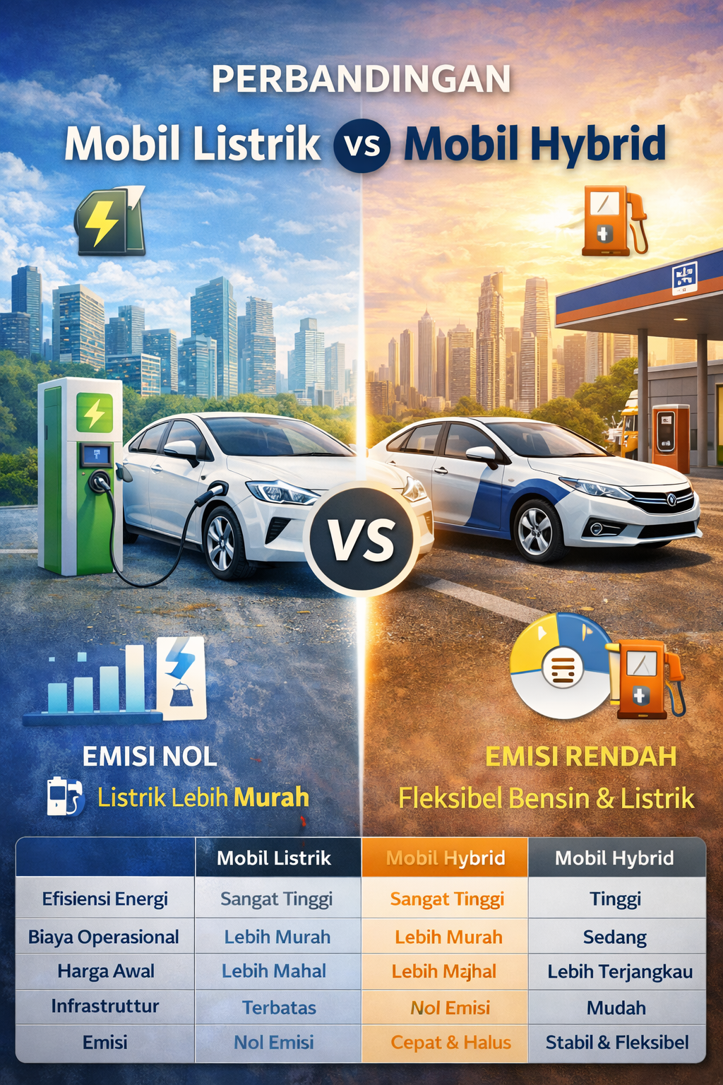 | Aspek | Mobil Listrik | Mobil Hybrid |