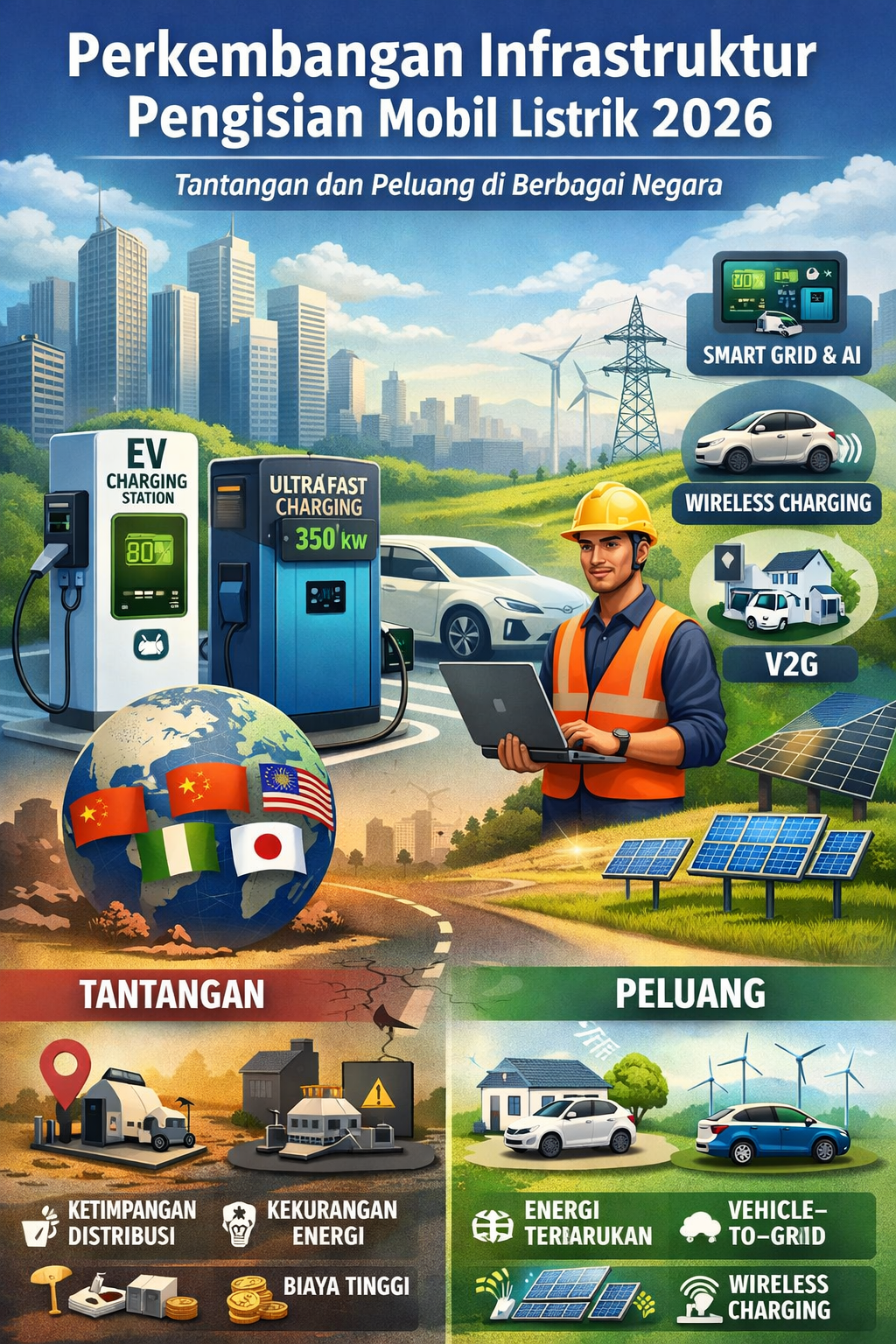 Tahun 2026 menjadi titik penting dalam perkembangan infrastruktur pengisian mobil listrik secara global. Pertumbuhan yang pesat menunjukkan komitmen dunia terhadap transisi energi bersih, namun masih dihadapkan pada berbagai tantangan seperti distribusi yang tidak merata, kebutuhan energi besar, dan biaya investasi tinggi.