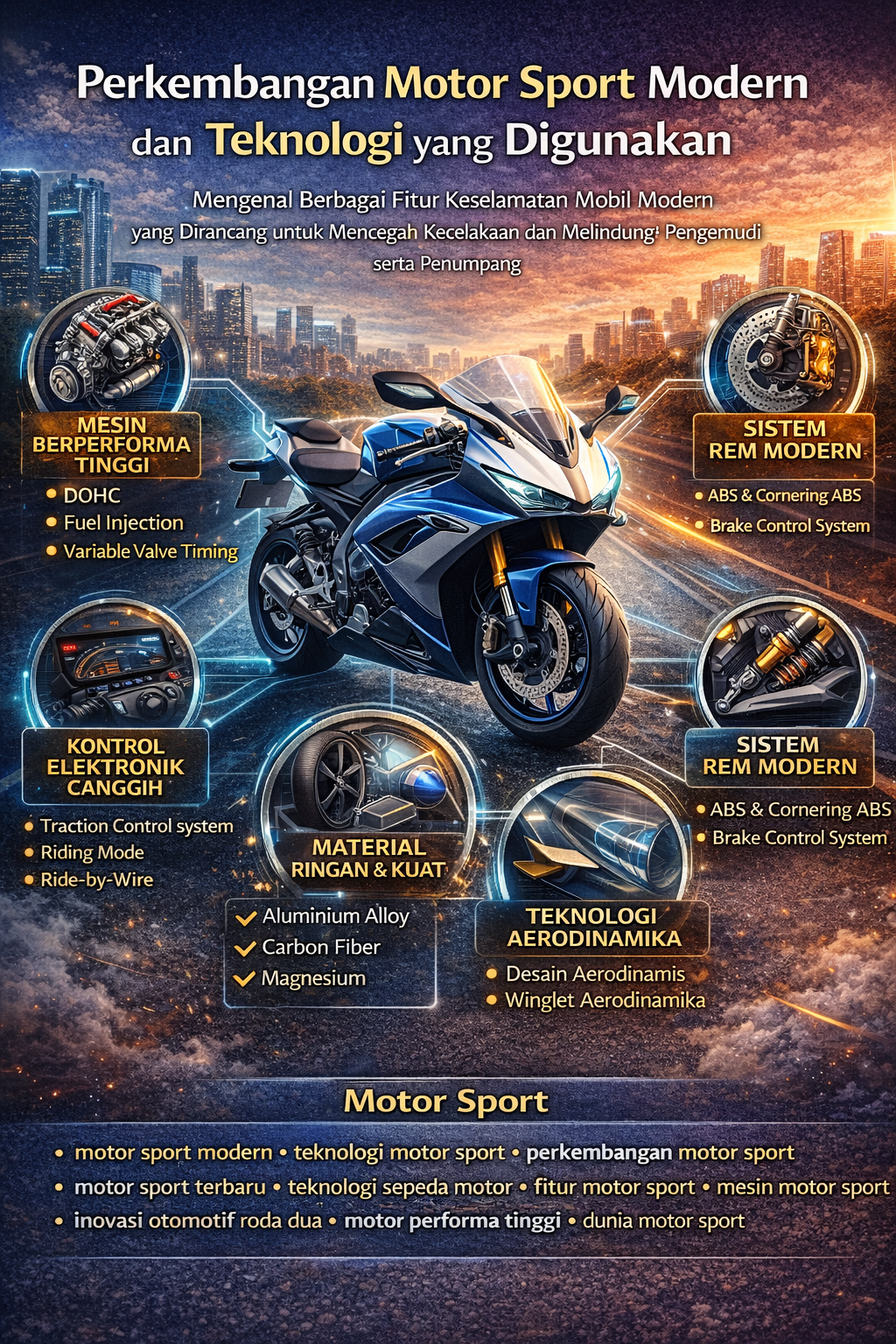 Perkembangan motor sport modern menunjukkan bagaimana teknologi otomotif terus berkembang untuk meningkatkan performa, keamanan, serta kenyamanan berkendara. Inovasi pada mesin, sistem elektronik, teknologi pengereman, hingga desain aerodinamika membuat motor sport modern menjadi kendaraan yang sangat canggih.