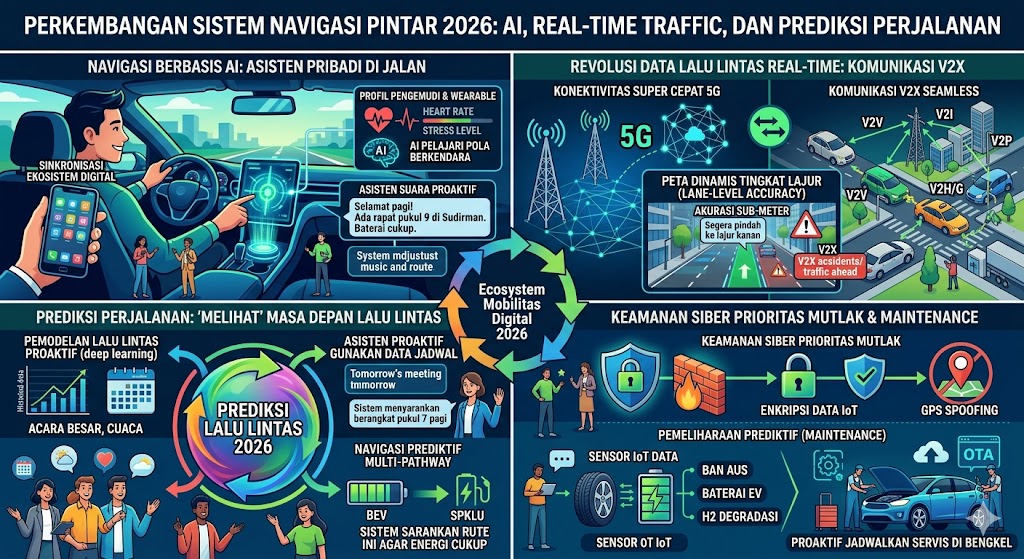 Ciri utama navigasi tahun 2026 adalah penggunaan AI yang sangat dalam. Navigasi tidak lagi pasif menunggu input tujuan dari pengguna.