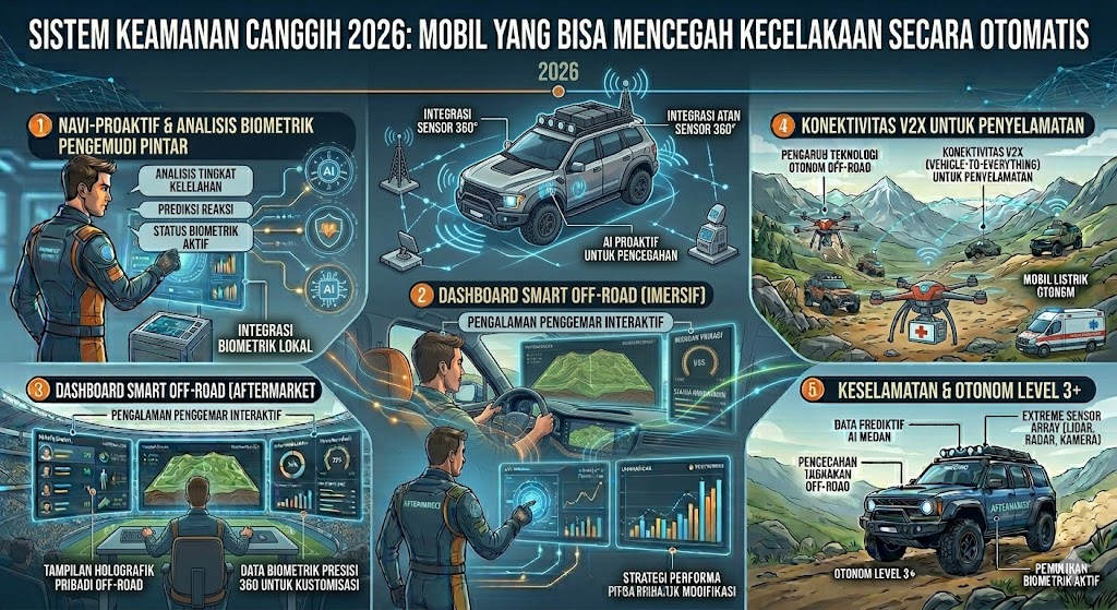 Tahun 2026 menandai era baru dalam industri otomotif, di mana visi “nol kecelakaan” bukan lagi sekadar impian, melainkan realitas yang didorong oleh inovasi teknologi canggih. Integrasi mendalam antara AI proaktif, sensor biometrik presisi 360, dan ekosistem konektivitas cerdas telah menciptakan sistem keamanan kendaraan yang tidak hanya bereaksi terhadap bahaya, tetapi secara aktif mencegahnya sebelum terjadi. Artikel ini akan menelisik perkembangan sistem keamanan canggih di tahun 2026, menyoroti evolusi dari asisten pelatih biometrik hingga integrasi penuh dalam ekosistem mobilitas off-road cerdas.